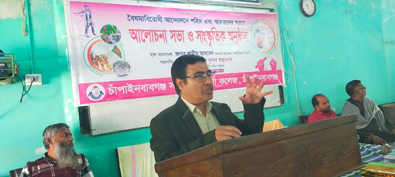 চাঁপাইনবাবগঞ্জ মহিলা কলেজে বৈষম্যবিরোধী আন্দোলনে হতাহতদের স্মরণ