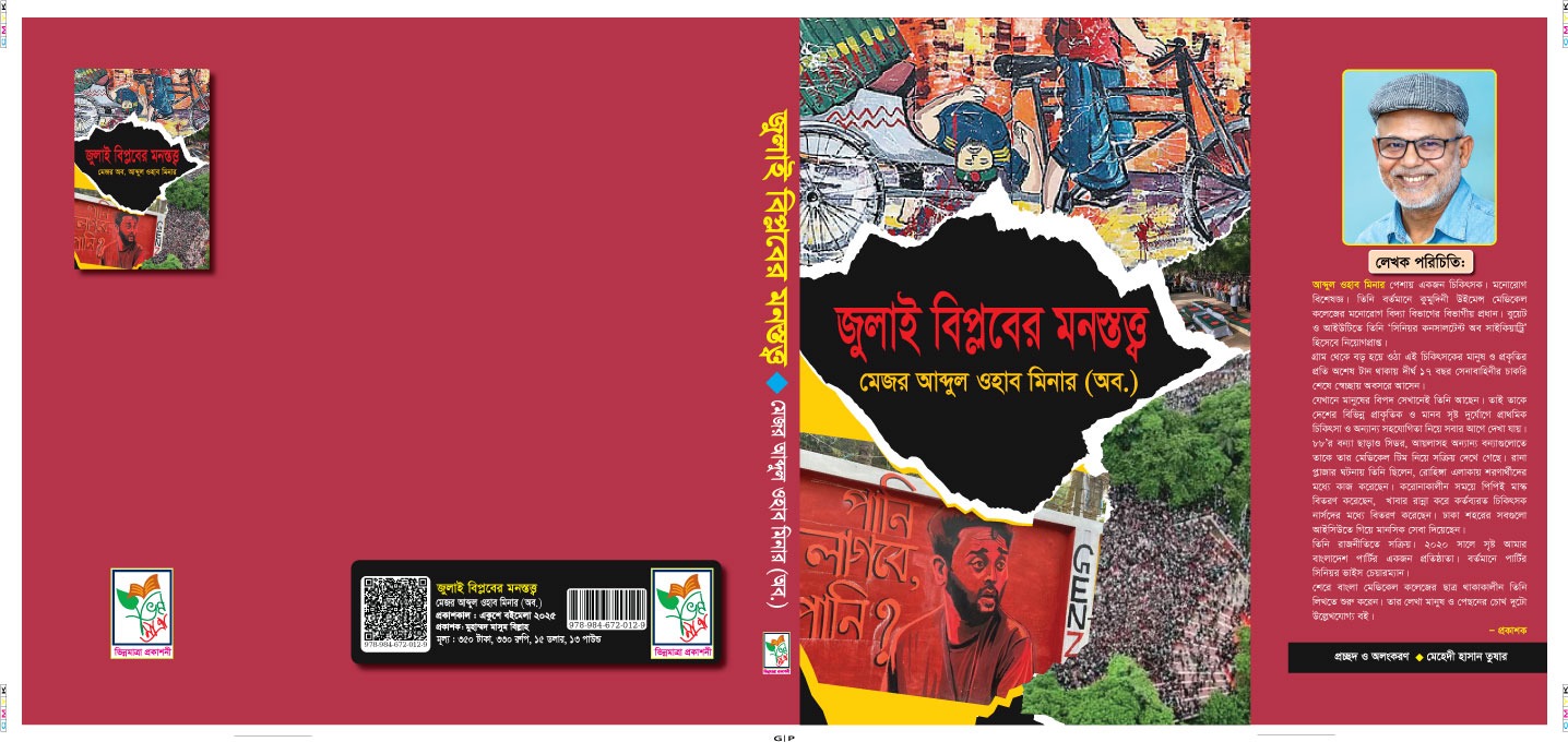 মোঃ কামাল হোসেন, পটুয়াখালী জেলা প্রতিনিধি : জুলাই-আগষ্টের ছাত্র জনতার বিপ্লবের সম্মুখ সারির একজন যোদ্ধা বিশিষ্ট মনরোগ বিশেষজ্ঞ প্রফেসর ডা. মেজর আবদুল ওহাব মিনার (অব.) এর লেখা "জুলাই বিপ্লবের মনস্তত্ত্ব" বইয়ের মোড়ক উম্মোচন করা হবে।