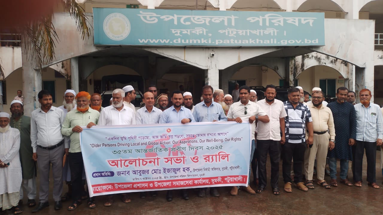 বিশেষ প্রতিনিধি : পটুয়াখালী'র দুমকিতে যথাযোগ্য মর্যাদায় ৩৫তম আন্তর্জাতিক প্রবীণ দিবস পালিত হয়েছে।