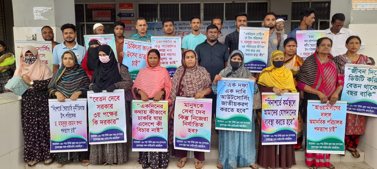 অভিযোগে উল্লেখ করা হয়, ২৫০ শয্যা বিশিষ্ট জেলা সদর হাসপাতালে আউট সোসিংয়ের মাধ্যমে নিয়োগকৃত কর্মচারীদের কাজের মেয়াদ বর্ধিত করনসহ বকেয়া বেতন ও চাকরিতে পূর্ণবহালের দাবী জানানো হয়।