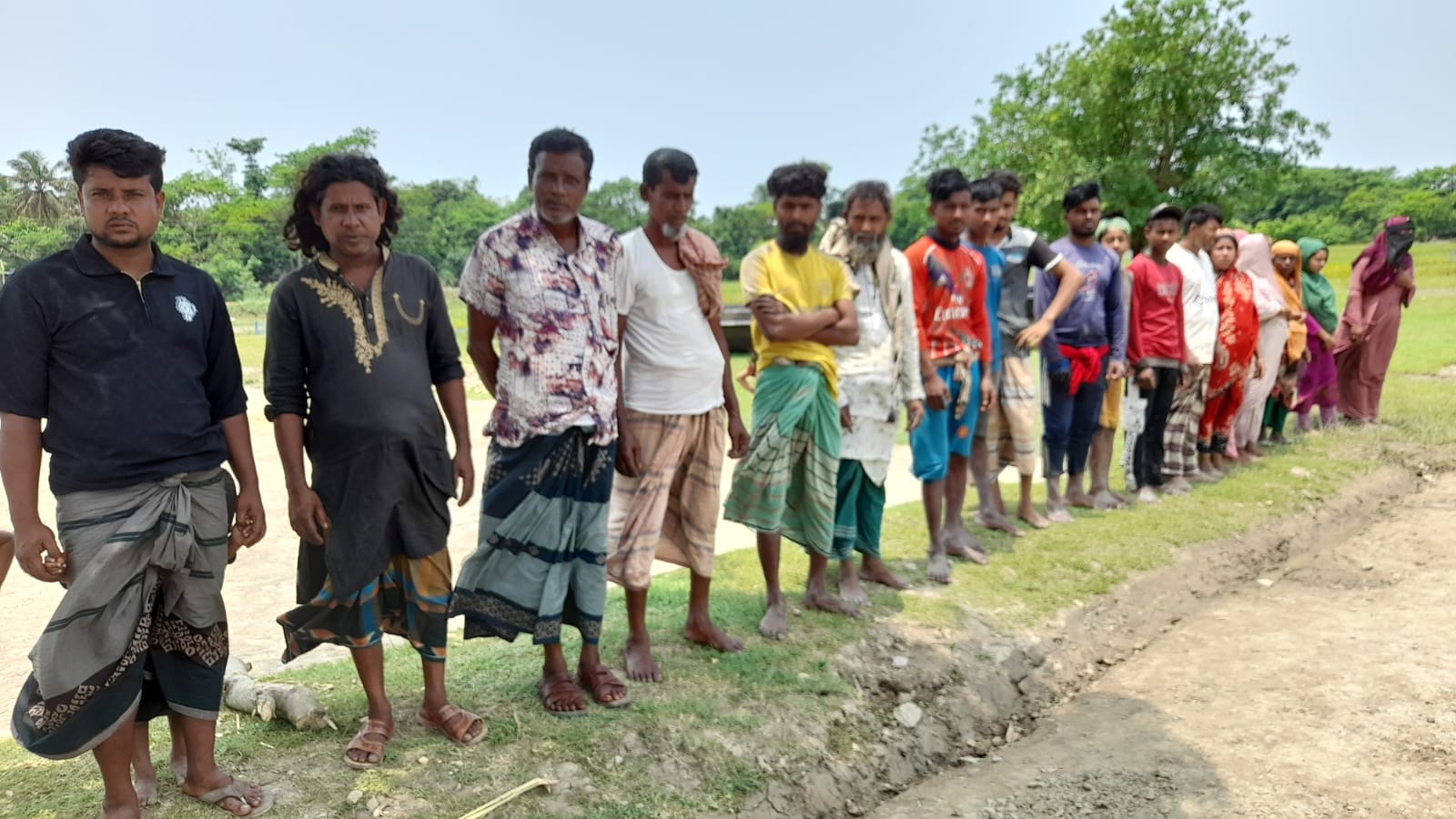 শান্তিগঞ্জে প্রতিবন্ধির জমির ধান কাটা ও হামলার ঘটনায় মানববন্ধন