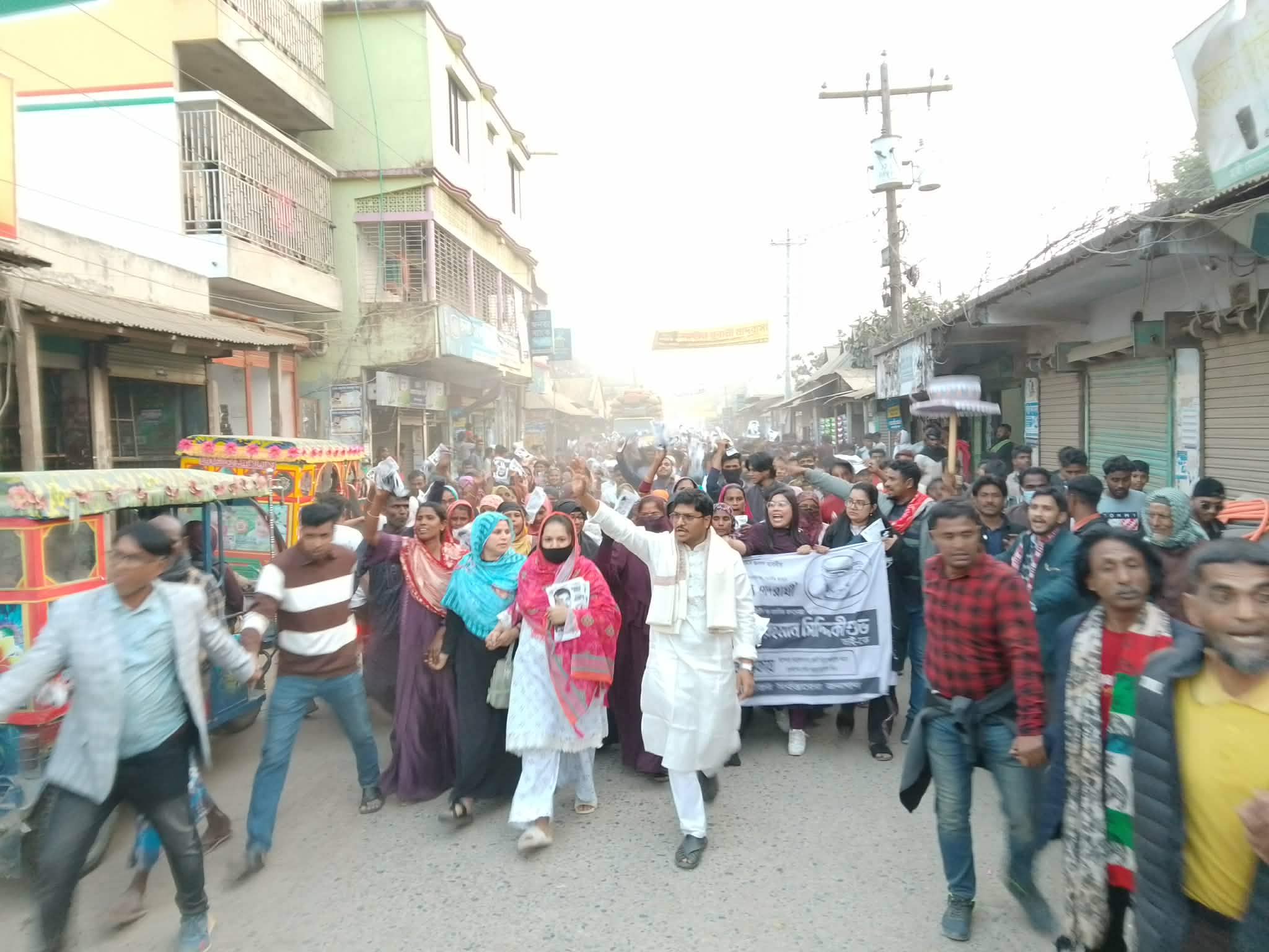 এর আগে উপজেলার বিভিন্ন ইউনিয়ন থেকে খণ্ড খণ্ড মিছিল এসে উমির উদ্দিন পাইলট উচ্চ বিদ্যালয় মাঠে সমবেত হয়, যা গণমিছিলকে আরও প্রাণবন্ত করে তোলে।