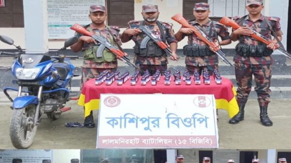 রাসেল ইসলাম, লালমনিরহাট : সীমান্তে ১৫ বিজিবি’র সাঁড়াশি অভিযানে বিপুল পরিমাণ গাঁজা ও ইস্কাফ সিরাপ জব্দ করা হয়েছে। বৃহস্পতিবার (১৭ জুলাই) দিবাগত রাতে লালমনিরহাট ব্যাটালিয়ন ১৫ বিজিবি’র দায়িত্বপ্রাপ্ত এলাকায় বিজিবি’র
