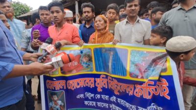 মো: মাসুদ রানা, পীরগঞ্জ (রংপুর) প্রতিনিধি : রংপুরের পীরগঞ্জে মদনখালী ইউনিয়নের হাসারপাড়া কিশোর বেলালকে নৃশংস ভাবে হত্যা ও মাদকাসক্ত বিটুলের ফাঁসির দাবিতে মানবন্ধন ও প্রতিবাদ সভা অনুষ্ঠিত হয়েছে। আজ সোমবার