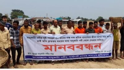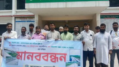 চাঁপাইনবাবগঞ্জ জেলা প্রতিনিধি : সদর উপজেলা প্রশাসন চাঁপাইনবাবগঞ্জে দেবীনগর বাসির মানববন্ধন অনুষ্ঠিত হয়েছে। আজ মঙ্গলবার দুপুর ১২ টায় সদর উপজেলা প্রকৌশলী এলজিইডির নির্বাহী আজহারুল ইসলাম বরাবর মানববন্ধন শেষে স্মারকলিপি প্রদান