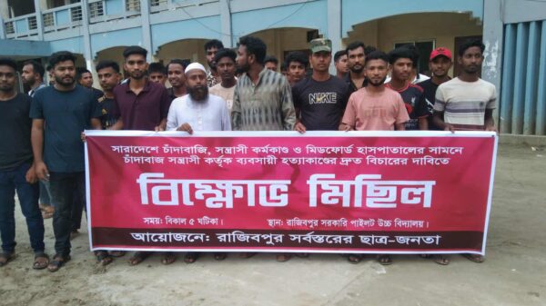 রাজিবপুর (কুড়িগ্রাম) প্রতিনিধি : সারাদেশে চাঁদাবাজি,সন্তাসী কর্মকান্ড ও মিডফোর্ড হাসপাতালের সামনে চাঁদাবাজি সন্ত্রসী কর্তৃক ব্যবসায়ী হত্যাকান্ডের দ্রুত বিচারের দাবিতে বিক্ষোভ মিছিল করেছে ছাত্র জনতা। রবিবার বিকেল ৫ টায় রাজিবপুরে সর্বস্তরের