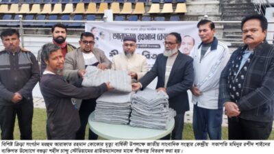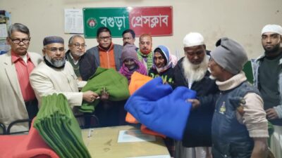 বগুড়া প্রতিনিধি : অসহায় মানুষের মাঝে বগুড়া প্রেসক্লাবে আজ শুক্রবার সকালে কম্বল বিতরণ করা হয়েছে। কম্বল বিতরণ করেন জাতীয় সাংবাদিক সংস্থার কেন্দ্রীয় কমিটির সভাপতি আলহাজ্ব মমিনুর রশিদ সাইন। এ সময়