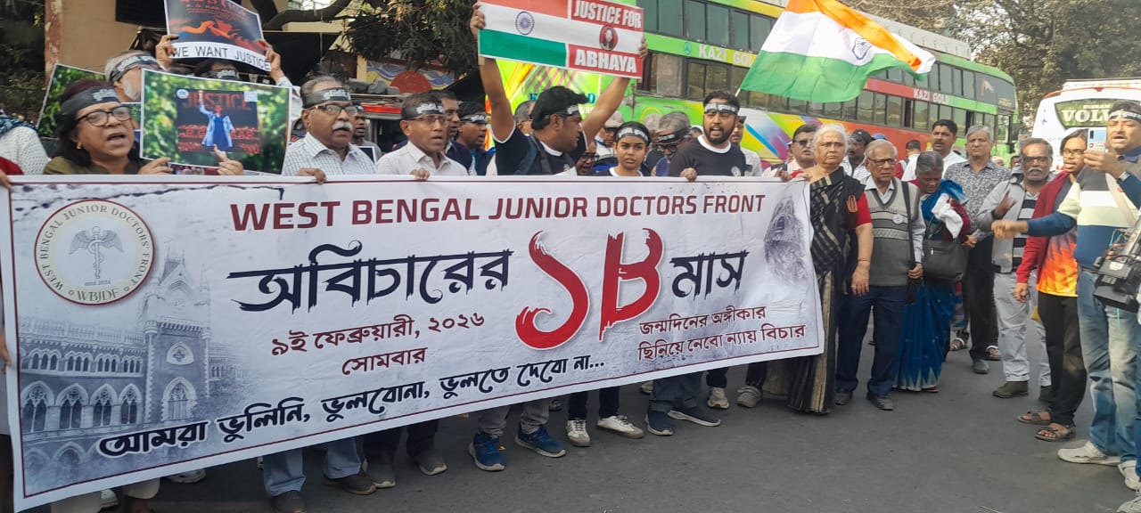 সমরেশ রায় ও শম্পা দাস, কলকাতা, পশ্চিমবঙ্গ : আজ ৯ই ফেব্রুয়ারি সোমবার দুপুর আড়াই টায় ধর্মতলা মেট্রো চ্যানেলের সামনে, ওয়েস্ট বেঙ্গল জুনিয়র ডক্টর ফ্রন্টের আহবানে অভয়ার ৩৩ তম জন্মদিনে এবং বিচারহীন ১৮ মাসকে সামনে রেখে, ন্যায় বিচারের দাবী নিয়ে প্রতিবাদের ঝড় তুললেন। এবং কলকাতা হাইকোর্টের বিচারপতিকে স্মারকলিপি দেন।