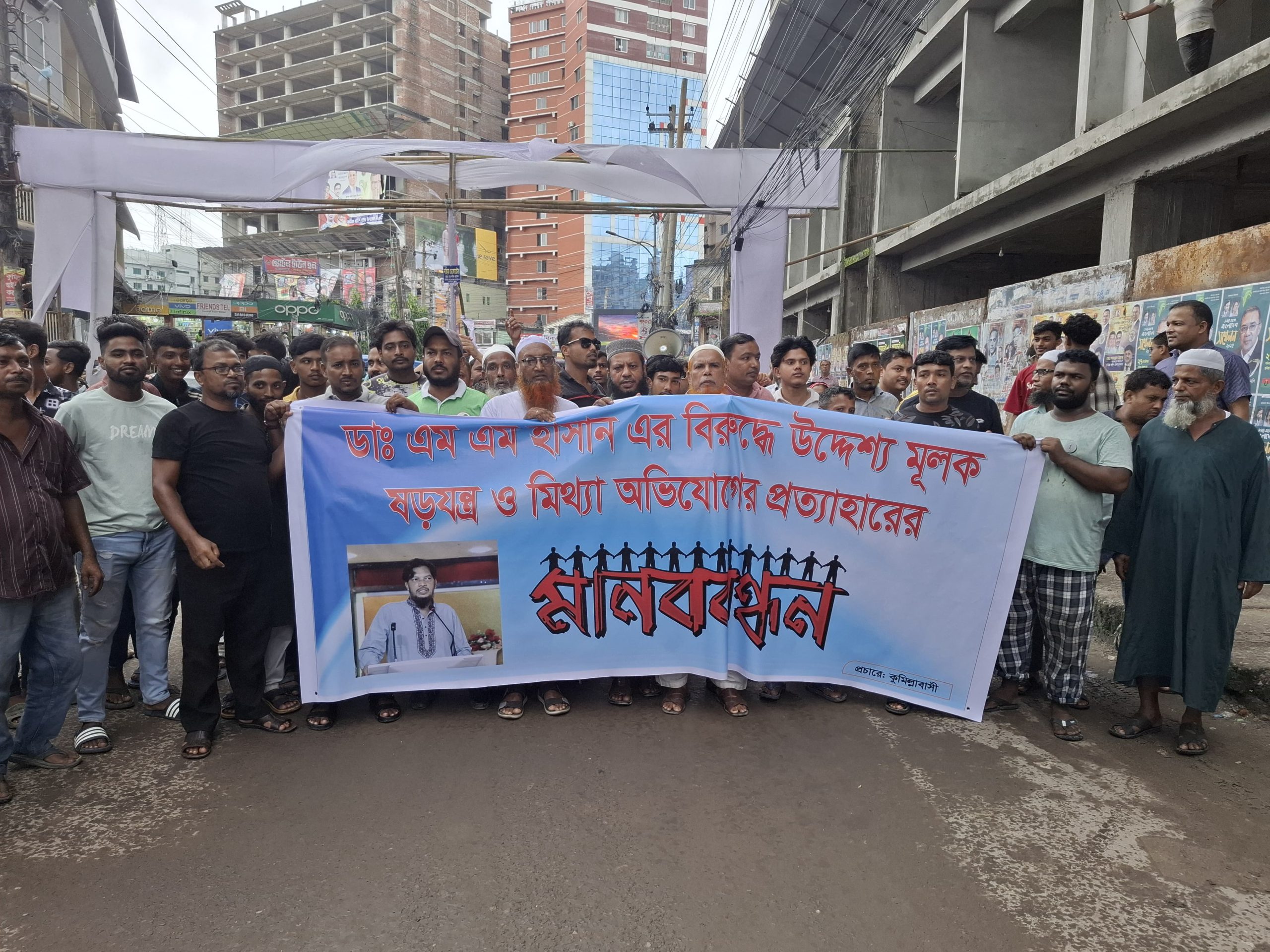 কুমিল্লায় ড্যাব সভাপতি এম এম হাসানের বিরুদ্ধে ষড়যন্ত্রের অভিযোগে মানববন্ধন