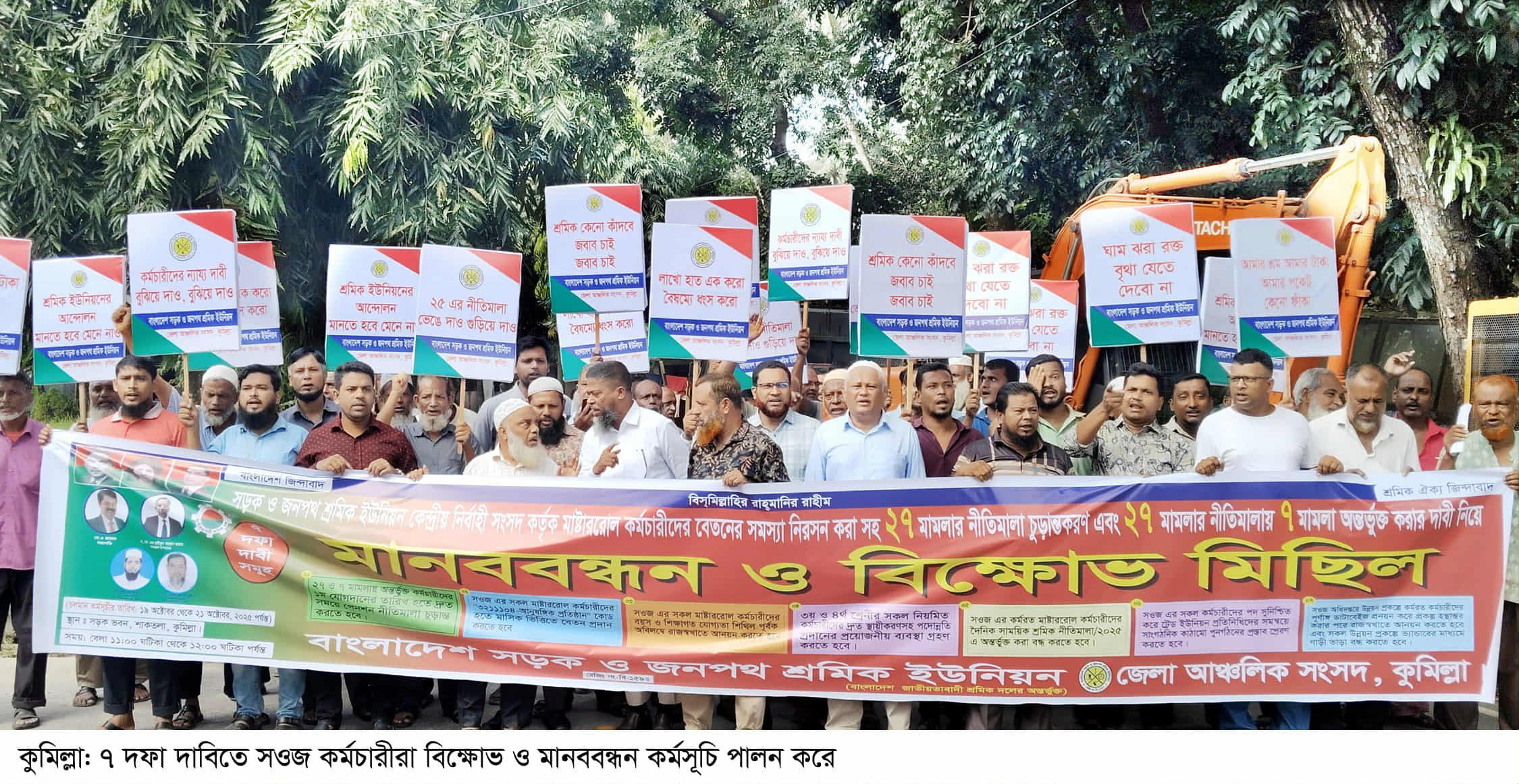 কুমিল্লায় সওজ কর্মচারীদের ৭ দফা দাবিতে বিক্ষোভ-মানববন্ধন