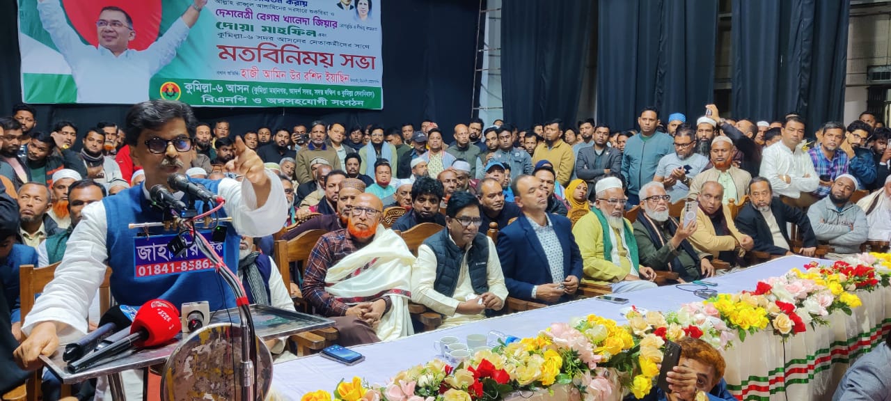 বিএনপির ভারপ্রাপ্ত চেয়ারম্যান তারেক রহমানের স্বদেশ প্রত্যাবর্তনে শুকরিয়া জ্ঞাপন এবং দেশনেত্রী বেগম খালেদা জিয়ার রোগমুক্তি কামনায় আয়োজিত দোয়া মাহফিল ও কুমিল্লা-০৬ (সদর) আসনের নেতাকর্মীদের সঙ্গে মতবিনিময় সভায় প্রধান অতিথির বক্তব্যে তিনি এসব কথা বলেন।