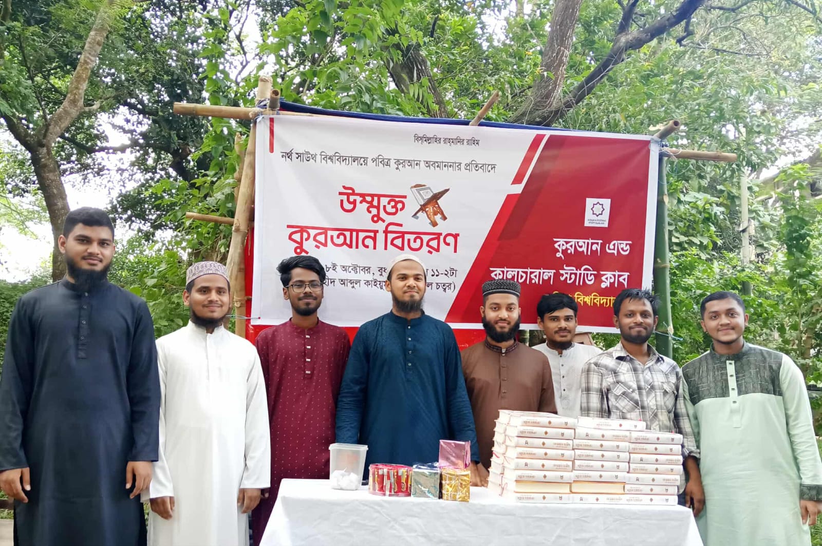 কুরআন অবমাননার প্রতিবাদে কুবিতে উন্মুক্ত কুরআন বিতরণ