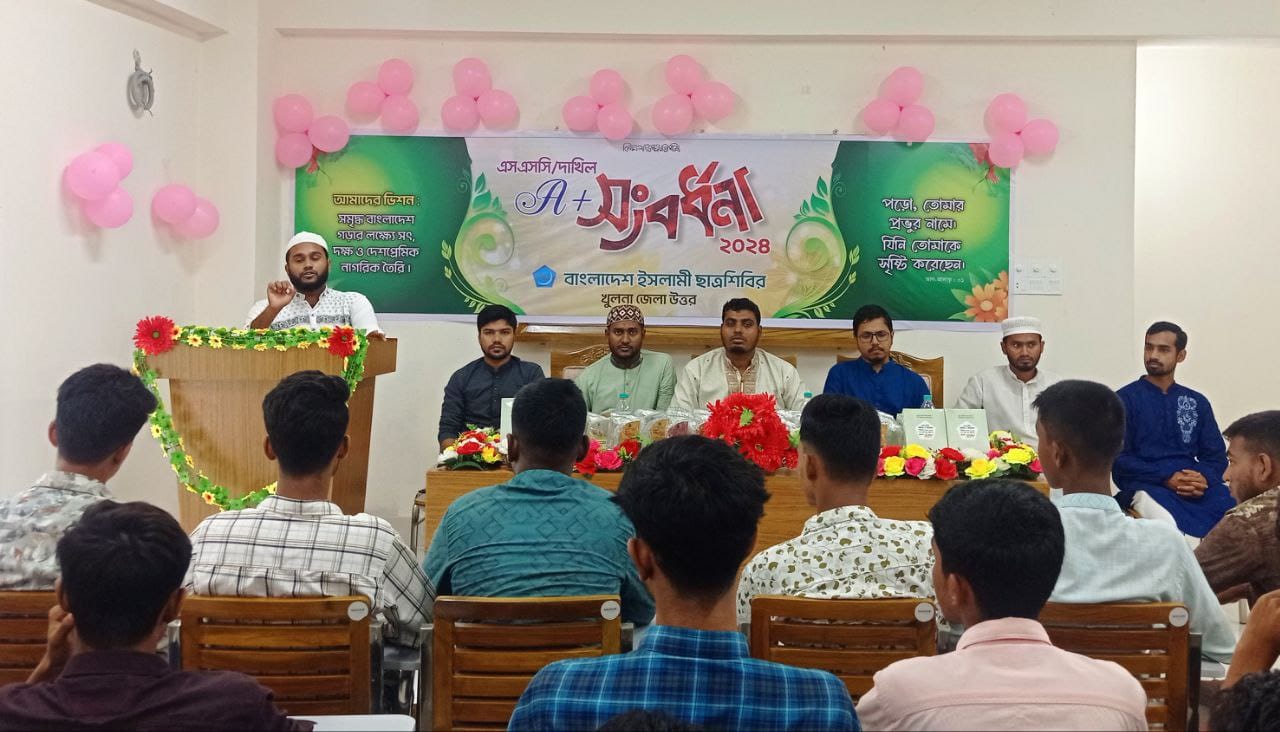 মাসুম বিল্লাহ ইমরান, বিশেষ প্রতিনিধি খুলনা : এসএসসি, দাখিল ও সমমান পরীক্ষায় জিপিএ-৫ প্রাপ্তসহ কৃতী শিক্ষার্থীদের তাৎক্ষণিক সংবর্ধিত করলো বাংলাদেশ ইসলামী ছাত্রশিবির খুলনা জেলা উত্তর শাখা।শনিবার বিকাল ৫ টায় ফুলতলা উপজেলা মডেল মসজিদের অডিটোরিয়ামে এ সংবর্ধনার আয়োজন করা হয়।জেলা সভাপতি বেলাল হোসাইন এর সভাপতিত্বে সেক্রেটারি আবু ইউসুফ ফকিরের সঞ্চালনায় প্রধান অতিথি হিসেবে উপস্থিত ছিলেন বাংলাদেশ ইসলামী ছাত্রশিবিরের কেন্দ্রীয় কার্যকারী পরিষদ সদস্য ও খুলনা মহানগর সভাপতি আরাফাত হোসেন মিলন।