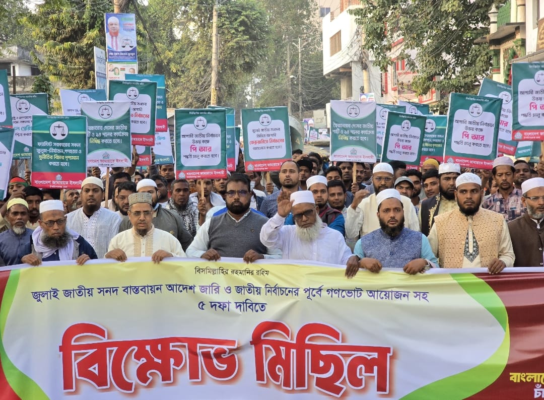 চাঁপাইনবাবগঞ্জে জুলাই সনদ বাস্তবায়নসহ ৫ দফা দাবিতে জামায়াতের মিছিল