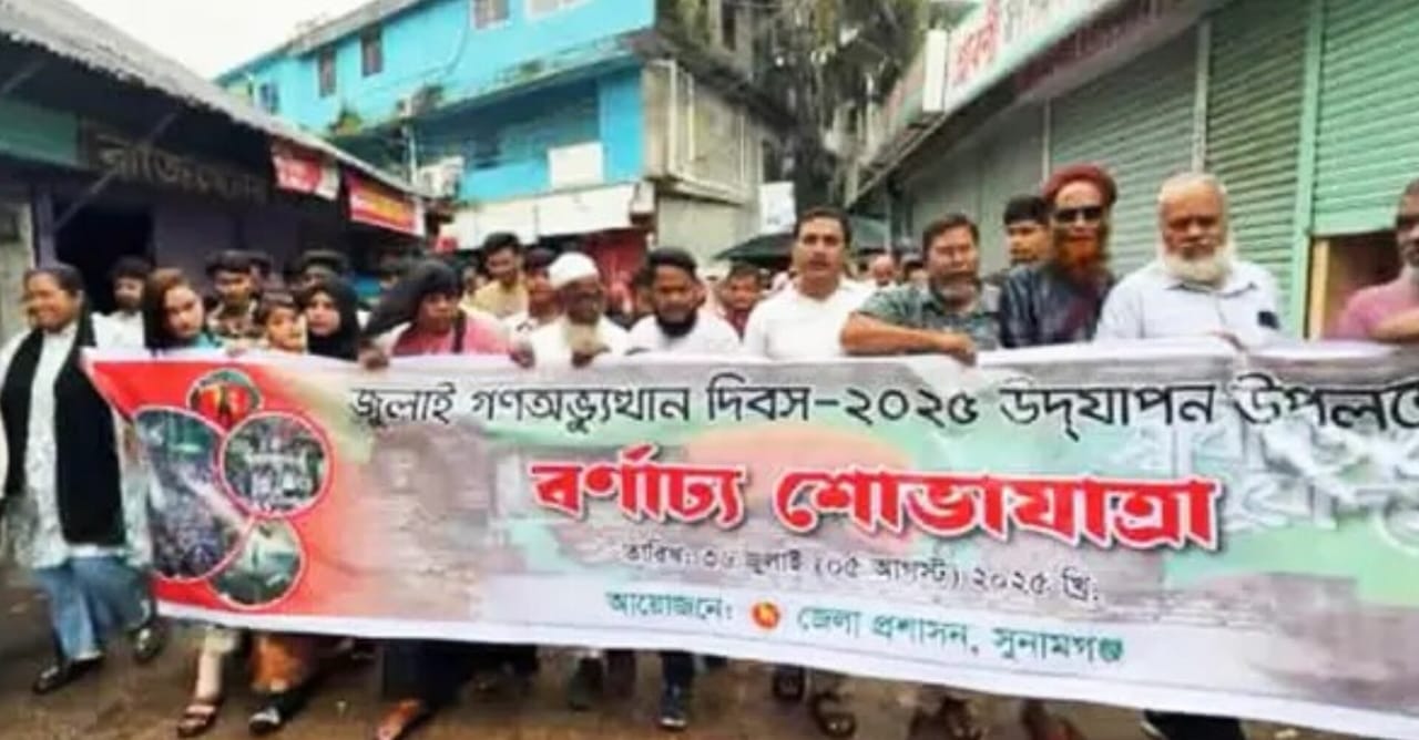 আজ মঙ্গলবার ৫ আগস্ট দুপুরে জেলা প্রশাসনের আয়োজনে প্রথমে সুনামগঞ্জ জেলা প্রশাসকের কার্যালয়ের সামনে থেকে শোভাযাত্রাটি বের হয়ে শহরের গুরুত্বপূর্ণ সড়ক প্রদক্ষিণ করে জেলা শিল্পকলা একাডেমির হল রুমে গিয়ে আলোচনা সভায় মিলিত হয়।