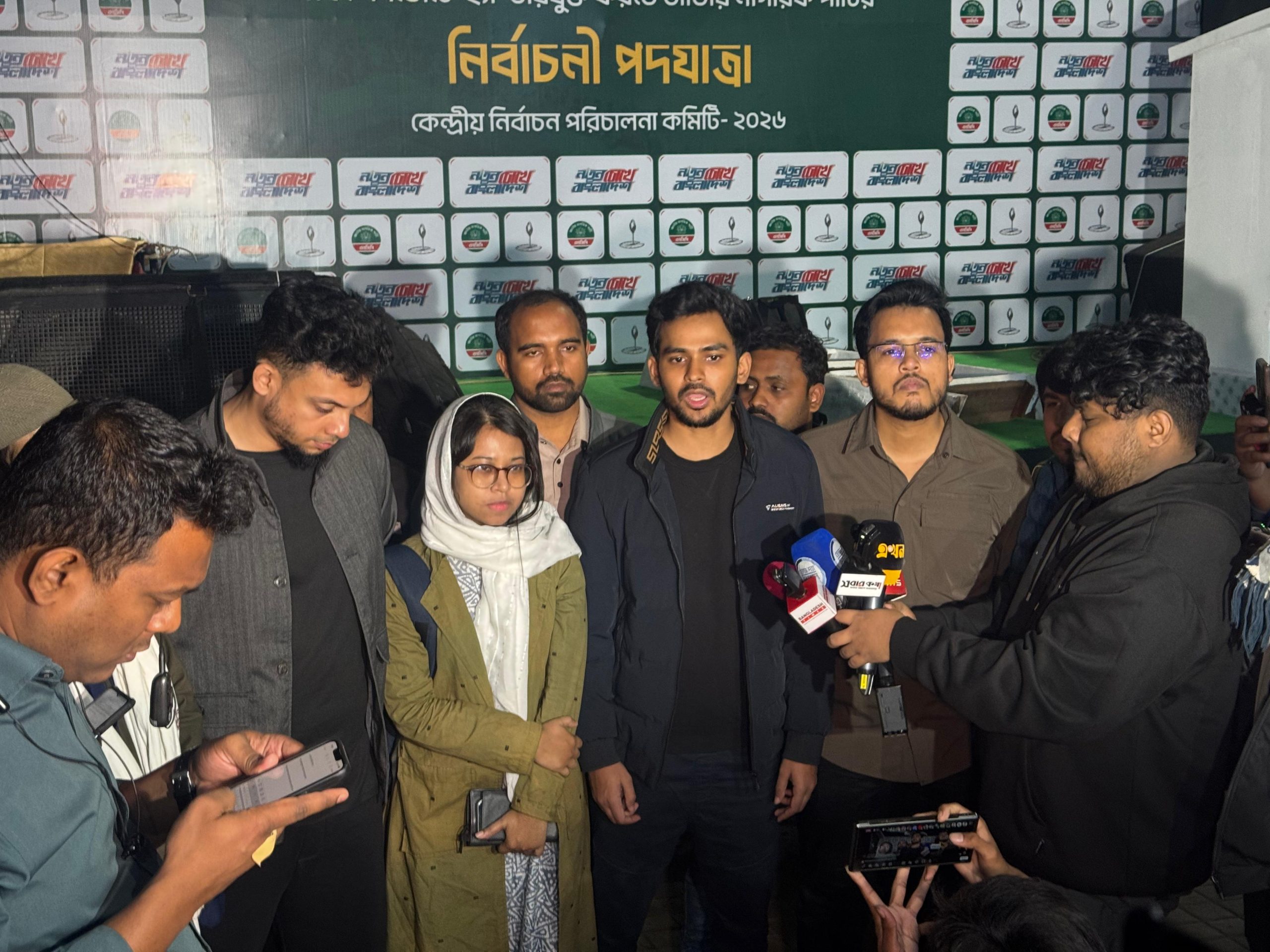সোমবার ২৬ জানুয়ারি বাংলামোটরে এনসিপির অস্থায়ী দলীয় কার্যালয়ের সামনে নির্বাচনি পদযাত্রার শুরুতে সাংবাদিকদের সাথে আলোচনাকালে আসিফ মাহমুদ সজীব ভূঁইয়া এসব কথা বলেন।