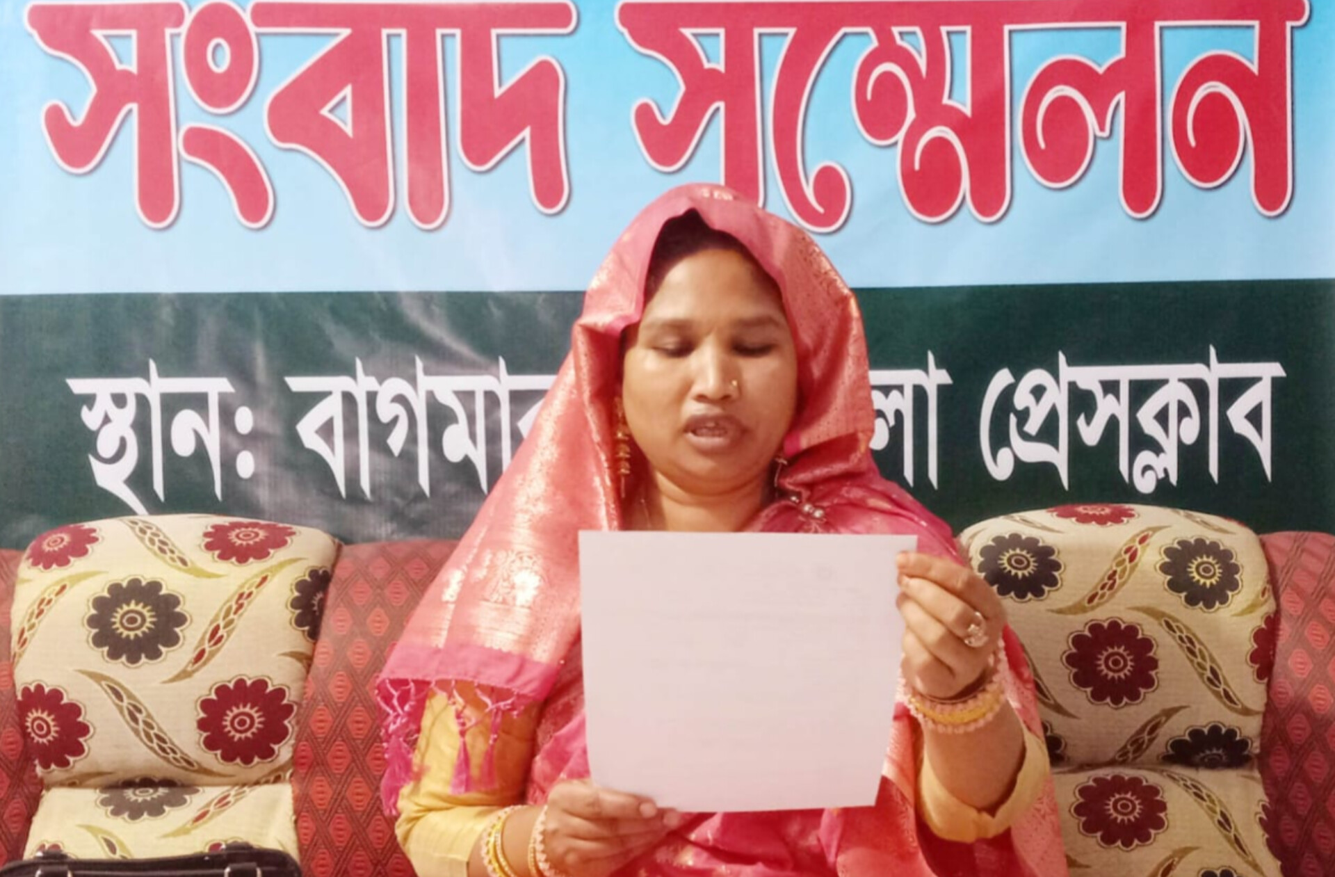 সংবাদ সম্মেলনে ভুক্তভোগী আছমা বেগম দাবি করেন, তিনি বগুড়া সদরে টিএমএসএস নামে একটি এনজিওতে চাকরি করেন। তার জন্মস্থান গাইবান্দার সুন্দরগঞ্জ উপজেলার শান্তিরাম গ্রামে। তার বাবার নাম আফাজ উদ্দিন। চাকরি করার সুবাদে বগুড়া সদরে আনসার ভিডিপি অফিসে কর্মরত আনসার ভিডিপি সদস্য এমরান আলীর সঙ্গে চার বছর আগে তার পরিচয় হয়। প্রথম স্ত্রী মারা গেছে বলে এমনার আলী মিথ্যা কথা বলে প্রতারণা করে তার সঙ্গে প্রেমের সম্পর্ক গড়ে তুলে। সেই প্রেমের সম্পর্ককে চিরস্থায়ী করতে দুই বছর আগে রাজশাহী নোটারী পাবলিকে এফিডেভিট করে তাদের বিয়ে হয়। এছাড়া হাটগাঙ্গোপাড়া কাজী অফিসে গিয়ে তিন লক্ষ টাকা দেনমোহর নির্ধারণ করে বিবাহ রেজিস্ট্রি করা হয়। এরপর থেকেই তারা বগুড়া সদরে একটি ভাড়া বাসায় দাম্পত্য সংসার শুরু করেন। এরপর এমরান আলী তার কাছে থেকে বেতন ও স্বর্ণ বিক্রয়ের সাত লক্ষ টাকা হাতিয়ে নেয়। এছাড়া তার (আছমা) নামে একটি এনজিও থেকে ৬০ হাজার টাকা লোন নিয়ে এমরান আলী ঈদের কয়েক দিন আগে তাকে কোনকিছু না জানিয়ে নিরুদ্ধেশ হয়ে যায়। এ বিষয়ে বগুড়া সদর থানায় একটি লিখিত অভিযোগও দেয়া হয়। এরপর স্বামীর খোঁজে গত বৃহস্পতিবার আছমা বেগম বাগমারার তকিপুর গ্রামে শ্বশুর বাড়িতে এসে জানতে পারেন এমরানের প্রথম স্ত্রী জীবিত আছে এবং তার দুটি সন্তানও রয়েছে। এ সময় স্ত্রী অধিকার নিয়ে ভুক্তভোগী আছমা বেগম ঘরের মধ্যে প্রবেশের চেষ্টার করলে প্রতারক স্বামী, সতীন ও শ্বশুর-শ্বাশুড়ি তাকে মারধর করে তাড়িয়ে দেয়।