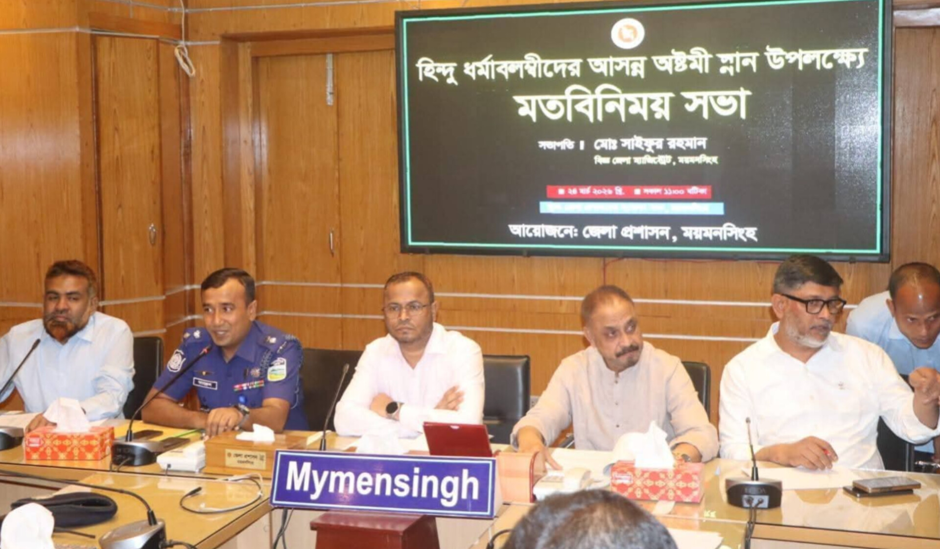 সভায় উপস্থিত ছিলেন জনাব আবু ওয়াহাব আকন্দ ওয়াহিদ, সংসদ সদস্য, ময়মনসিংহ-৪ (সদর) মোঃ রোকনুজ্জামান রোকন, প্রশাসক, ময়মনসিংহ সিটি কর্পোরেশন, জনাব মোহাম্মাদ কামরুল হাসান, পুলিশ সুপার, ময়মনসিংহ সহ অন্যান্য সুধীজন।