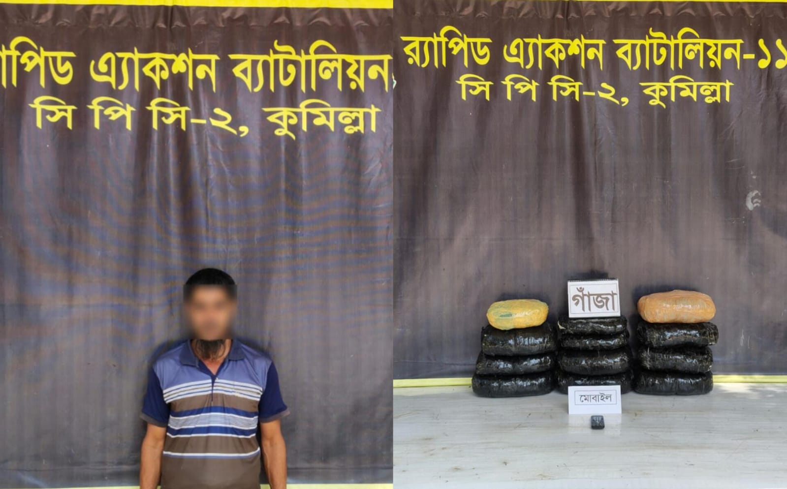 র‌্যাব-১১ এর অভিযানে কুমিল্লায় ২০ কেজি গাঁজাসহ মাদক ব্যবসায়ী গ্রেফতার