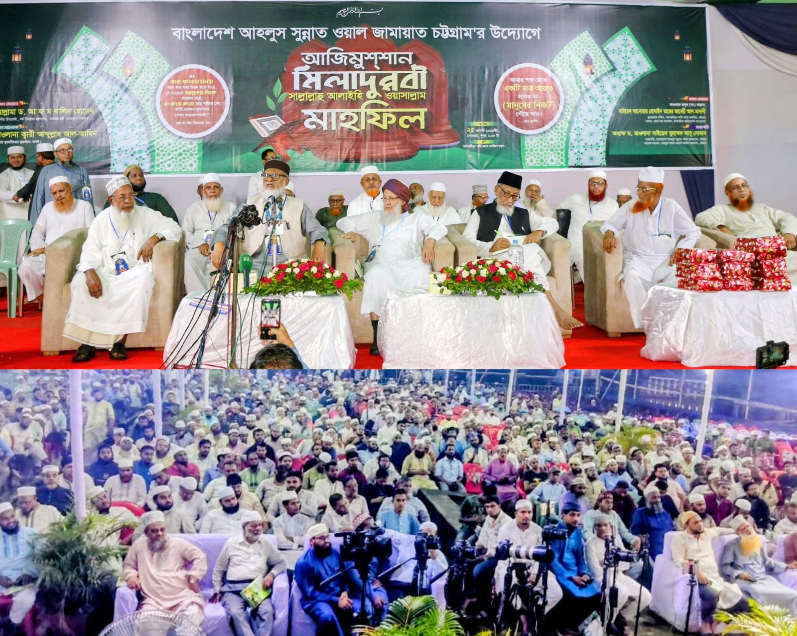 বাংলাদেশ আহলুস সুন্নাত ওয়াল জামায়াত চট্টগ্রামের সভাপতি চট্টগ্রাম বায়তুশ শরফ কামিল মাদ্রাসার সাবেক অধ্যক্ষ ড. মাওলানা সাইয়েদ মোহাম্মদ আবু নোমানের সভাপতিত্বে এবং মাওলানা মোহছেন আল হুসাইনী ও মাওলানা ইরফানুল হকের সঞ্চালনায় অনুষ্ঠিত আজিমুশশান মিলাদুন্নবী(সঃ) মাহফিলে প্রধান মেহমান হিসেবে বক্তব্য রাখেন আওলাদে রাসূল (সঃ) ইসলামিক ফাউন্ডেশনের বোর্ড অব গভর্নর (সদস্য) ও আন্দরকিল্লাহ জামে মসজিদের খতিব আল্লামা সাইয়েদ আনোয়ার হোসাইন তাহেরী জাবেরী আল মাদানী। প্রধান আলোচক ছিলেন প্রখ্যাত মুফাসসিরে কোরআন বিশিষ্ট আলেমে দ্বীন ও মিডিয়া ব্যক্তিত্ব মাওলানা ক্বারী আব্দুল্লাহ আল-আমিন।