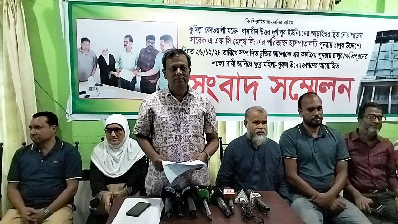 বুধবার ১ লা অক্টোবর সকালে কুমিল্লা প্রেসক্লাবে আয়োজিত সংবাদ সম্মেলনে হাসপাতালটি পুনরায় চালুর জোর দাবি জানানো হয়। পরে প্রেসক্লাবের সামনে মানববন্ধন কর্মসূচি পালন করা হয়।
