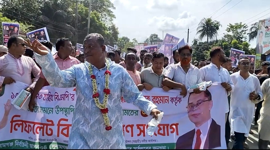 তৌফিকুর রহমাম তাহের, বিশেষ সুনামগঞ্জ প্রতিনিধি : আজ ৯ আক্টোবর বৃহস্পতিবার সকাল ১১টায় সুনামগঞ্জ জেলা বিএনপির সাবেক সাধারণ সম্পাদক ও আহবায়ক কমিটির অন্যতম সদস্য এবং আগামী জাতীয় সংসদ নির্বাচনে সুনামগঞ্জ-৪( সদর ও বিশ্বম্ভরপুর) আসনে সম্ভাব্য ধানের শীষের সংসদ সদস্য পদপ্রার্থী এড.নুরুল ইসলাম নুরুলের নেতৃত্বে এই দুই উপজেলার হাজাঁরো নেতাকর্মীদের নিয়ে শহরের পুরাতন বাসস্ট্রেশন এলাকার বিএনপির দলীয় কার্যালয়ের সামনে থেকে একটি গণমিছিল বের হয়ে ট্রাফিক পয়েন্ট, মধ্যবাজার, পশ্চিমবাজার, উত্তর আরপিননগর, তেঘরিয়াসহ বিভিন্ন এলাকায় তারেক রহমানের ৩১ দফা বাস্তবায়নের জন্য জনগনের মাঝে লিফলেট বিতরণ করেন। এবং পরে পুরাতন বাসস্ট্রেশন এলাকায় এসে এক সংক্ষিপ্ত সভাবেশ অনুষ্ঠিত হয়।