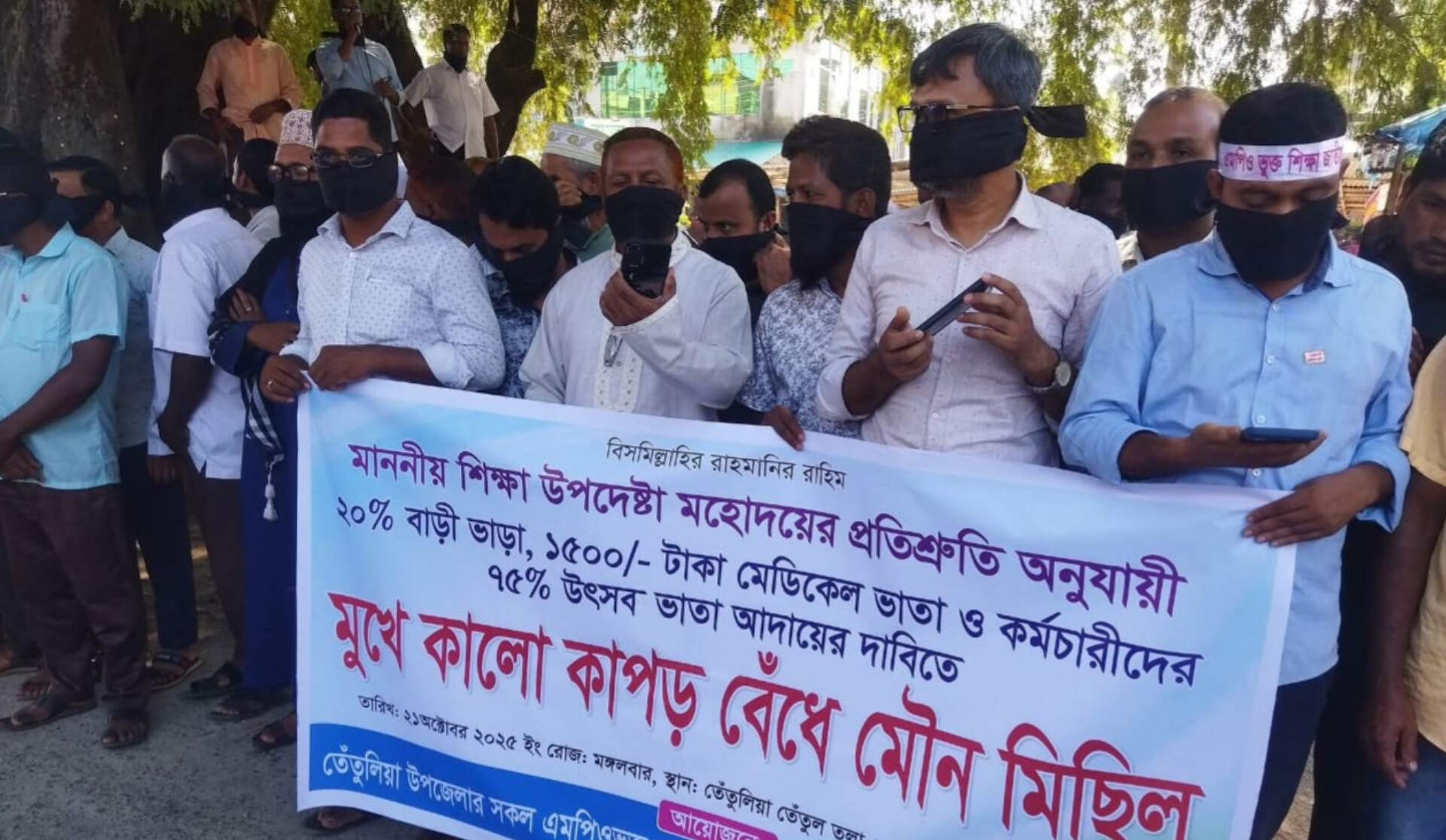 তেঁতুলিয়া মুখে কালো কাপড় বেঁধে শিক্ষকদের অবস্থান কর্মসূচি