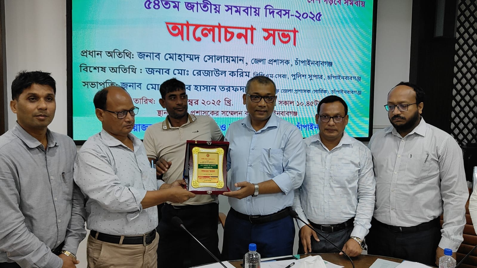 মাহিদুল ইসলাম ফরহাদ, চাঁপাইনবাবগঞ্জ জেলা প্রতিনিধি : চাঁপাইনবাবগঞ্জে ৫৪ তম জাতীয় সমবায় দিবস পালিত হয়েছে। আজ ১ লা নভেম্বর শনিবার সকাল সাড়ে দশ ঘটিকায় " সাম্য ও সমতায়, দেশ গড়বে সমবায় " প্রতিপাদ্য বিষয়কে সামনে রেখে জেলা প্রশাসন ও চাঁপাইনবাবগঞ্জ সমবায় বিভাগ এবং স্থানীয় সমবায়ীদের যৌথ উদ্যোগে পতাকা উত্তোলন সহ বর্ণাঢ্য র্যালি ও জেলা প্রশাসক কার্যালয়ে কনফারেন্স রুমে আলোচনা সভার আয়োজন করা হয়েছে। উক্ত অনুষ্ঠানে সভাপতিত্ব করেন চাঁপাইনবাবগঞ্জে অতিরিক্ত জেলা প্রশাসক (সার্বিক) জনাব মোঃ নাকিব হাসান তরফদার। আলোচনা সভায় স্বাগত বক্তব্য রাখেন চাঁপাইনবাবগঞ্জ জেলা সমবায় কর্মকর্তা মোঃ মোখলেছুর রহমান। আলোচনা সভায় সঞ্চালন করেন উপজেলা সমবায় অফিসার মোঃ আনিসুর রহমান। উক্ত আলোচনা সভায় প্রধান অতিথি হিসেবে ছিলেন চাঁপাইনবাবগঞ্জ জেলা প্রশাসক ও জেলা ম্যাজিস্ট্রেট জনাব মোহাম্মদ সোলায়মান। বিশেষ অতিথি হিসেবে ছিলেন চাঁপাইনবাবগঞ্জ সহকারী কমিশনার ও এক্সিকিউটিভ ম্যাজিস্ট্রেট অনুজ চন্দ, চাঁপাইনবাবগঞ্জ কৃষি সম্প্রসারণ অধিদপ্তরের মনিটরিং স্পেশালিস্ট কৃষিবিদ মোঃ জহুরুল ইসলাম, পলশা মহেশপুর পানি ব্যবস্থাপনা সমবায় সমিতি লিমিটেডের সভাপতি মোঃ ফজলে রাব্বি, অগ্রণী সেচ-প্রকল্পের সভাপতি মোঃ সাইফুল ইসলাম গাজী, সমিতির পক্ষ হতে বক্তব্য দেন পলশা মহেষপুর পানি ব্যবস্থাপনা সমবায় সমিতির সাধারণ সম্পাদক মোঃ মেসবাহুল হক ও সমিতির সদস্য মোসাঃ তানিয়া বেগম প্রমুখ।