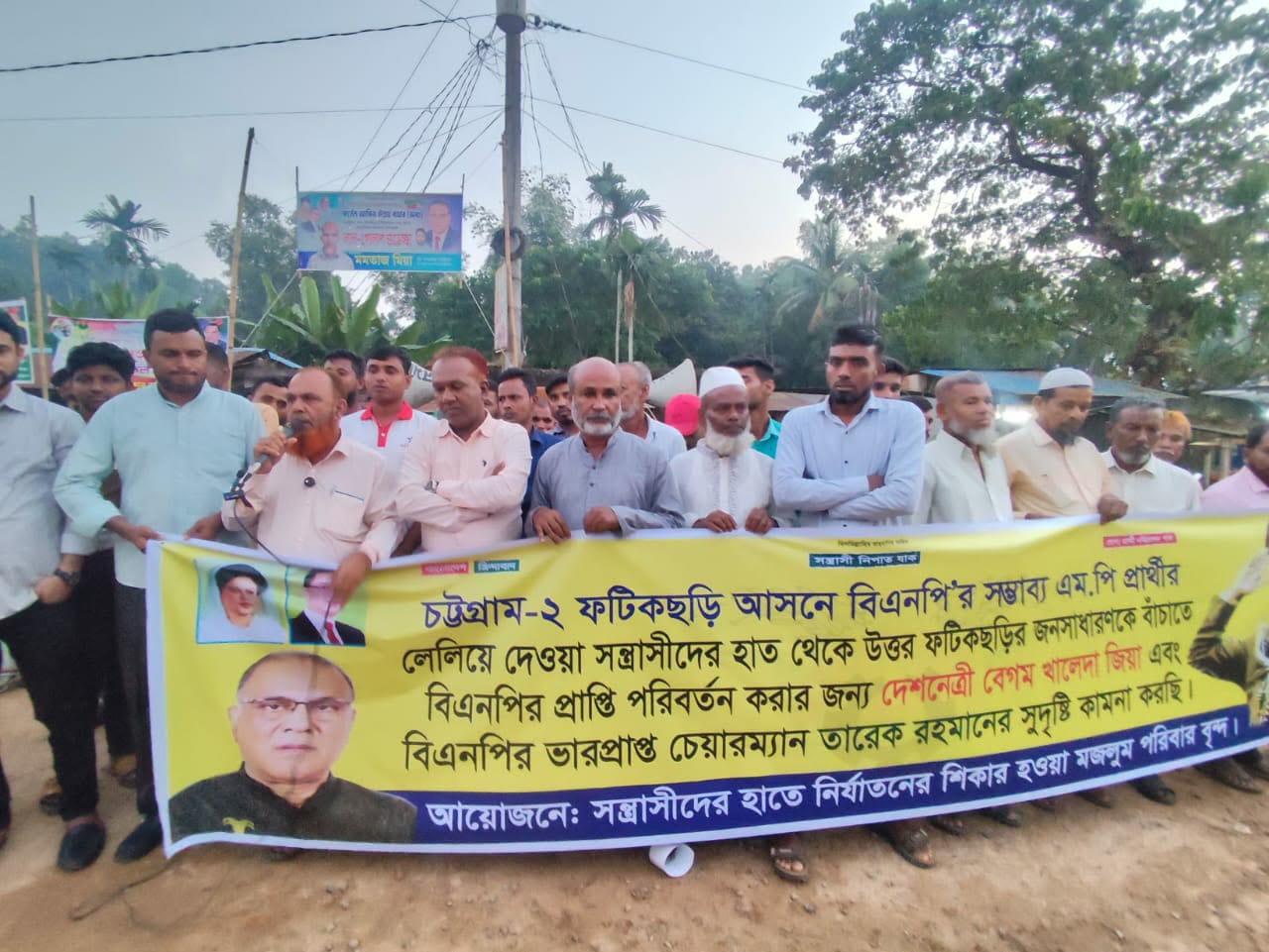 ফটিকছড়ি প্রতিনিধি : চট্টগ্রাম -২ ফটিকছড়িতে বাংলাদেশ জাতীয়তবাদী দল বিএনপির মনোনয়ন বঞ্চিত উপজেলা বিএনপির আহবায়ক (অবঃ) কর্ণেল আজিম উল্লাহ বাহার চৌধুরীর কর্মী-সমর্থকরা মানববন্ধন কর্মসূচি পালন করেছেন। সোমবার ১০ নভেম্বর বিকেলে উপজেলার দাঁতমারা ইউনিয়নের বালুটিলা বাজারে ফেনী–খাগড়াছড়ি আঞ্চলিক মহাসড়কে সন্ত্রাসীদের হাতে নির্যাতনের শিকার হওয়া মজলুম পরিবারবর্গের ব্যানারে এ মানববন্ধন অনুষ্ঠিত হয়।