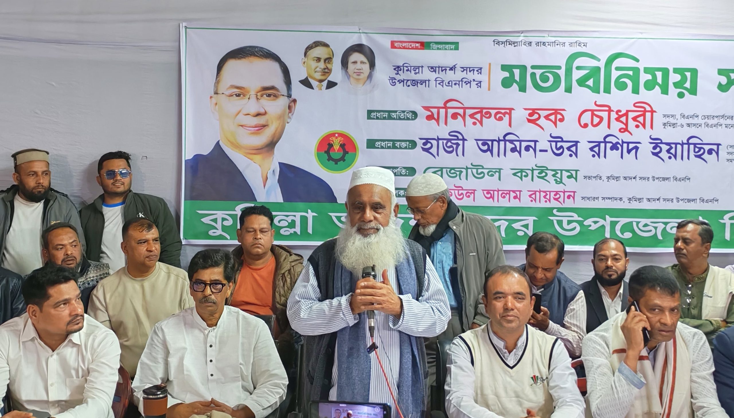 আদর্শ সদর উপজেলা বিএনপির সভাপতি রেজাউল কাইউমের সভাপতিত্বে এবং সাধারণ সম্পাদক শফিউল আলম রায়হানের সঞ্চালনায় মতবিনিময় সভায় প্রধান বক্তা হিসেবে উপস্থিত ছিলেন বিএনপি চেয়ারপারসনের উপদেষ্টা হাজী আমিনুর রশিদ ইয়াছিন, দক্ষিণ জেলা বিএনপির সিনিয়র সহ সভাপতি আমিরুজ্জামান আমির, সাংগঠনিক সম্পাদক নজরুল ইসলাম ভুঁইয়া স্বপন, মহানগর বিএনপির সাংগঠনিক সম্পাদক রাজিউর রহমান রাজীব, জেলা বিএনপির সাবেক যুগ্ম আহ্বায়ক মোজাহিদ চৌধুরী, মহানগর স্বেচ্ছাসেবক দলের সাবেক সভাপতি নিজামুদ্দিন কায়সারসহ বিভিন্ন ইউনিয়ন, ওয়ার্ডের নেতারা।