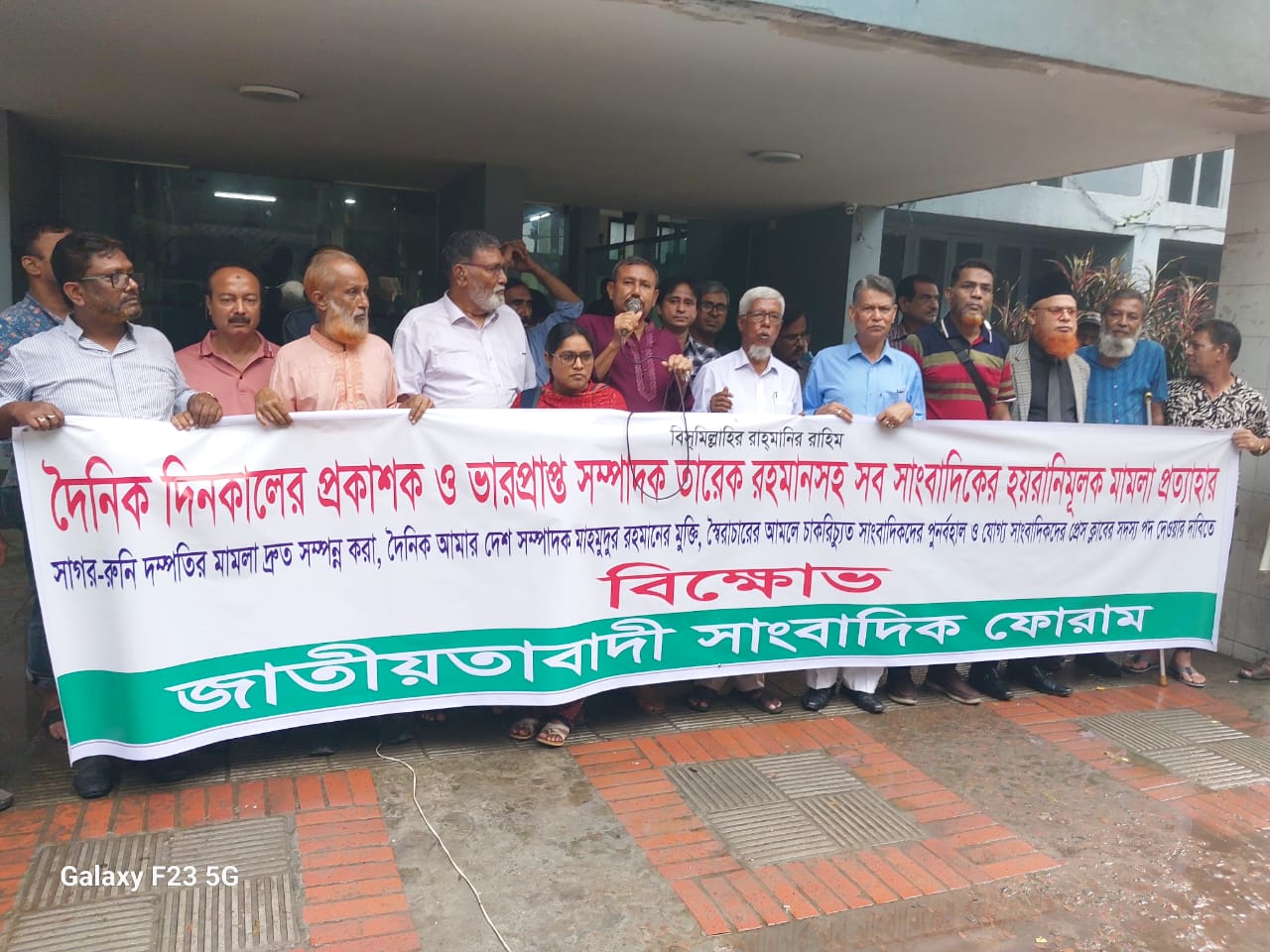 নিজস্ব প্রতিবেদ : তারেক রহমানসহ সব সাংবাদিকের বিরুদ্ধে স্বৈরাচারের দায়ের করা বানোয়াট মামলা প্রত্যাহারের দাবি দৈনিক দিনকালের প্রকাশক ও ভারপ্রাপ্ত সম্পাদক তারেক রহমানসহ সব সাংবাদিকের হয়রানিমূলক মামলা প্রত্যাহার, সাগর-রুনি দম্পতির হত্যা মামলার দ্রুত বিচার, স্বৈরাচারের আমলে চাকরিচ্যুত সাংবাদিকদের পুনর্বহাল, যোগ্য সাংবাদিকদের জাতীয় প্রেস ক্লাবের সদস্য পদ দেওয়ার দাবিতে আজ বৃহস্পতিবার বিকেলে এক বিক্ষোভ প্রদর্শন করা হয়।