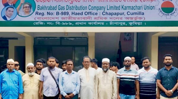 মোহাম্মদ শাহাদাত আলম অন্তর : বাখরাবাদ গ্যাস ডিস্ট্রবিউশন কোম্পানি লিমিটেড কর্মচারী ইউনিয়ন রেজিষ্ট্রেশন নং বি -৯৮৯ বাংলাদেশ জাতীয়তাবাদী শ্রমিক দল (ফেডারেশনের) অন্তভূক্ত হওয়ায় আজ ২০ আগষ্ট বুধবার বেলা ১২ টায়
