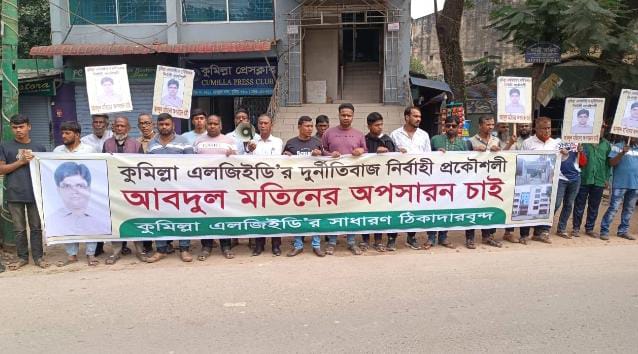 কুমিল্লা প্রতিনিধি : স্থানীয় সরকার প্রকৌশল অধিদপ্তর, কুমিল্লার নির্বাহী প্রকৌশলী মোহাম্মদ আবদুল মতিনকে অপসারণের দাবিতে মানববন্ধন অনুষ্ঠিত হয়েছে। ঘুষ, দুর্নীতি ও অনিয়মের প্রতিবাদে মঙ্গলবার ২ ডিসেম্বর বেলা সোয়া ১১ টায়