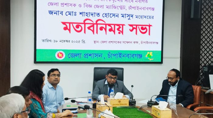 চাঁপাইনবাবগঞ্জ জেলা প্রতিনিধি : চাঁপাইনবাবগঞ্জে সাংবাদিকদের সাথে নবাগত জেলা প্রশাসকের মতবিনিময় সভা অনুষ্ঠিত হয়। চাঁপাইনবাবগঞ্জের নবাগত জেলা প্রসাশক ও বিজ্ঞ জেলা ম্যাজিস্ট্রেট বৃহস্পতিবার ১৮ নভেম্বর বিকেল ৪ টায় জেলা প্রশাসক
