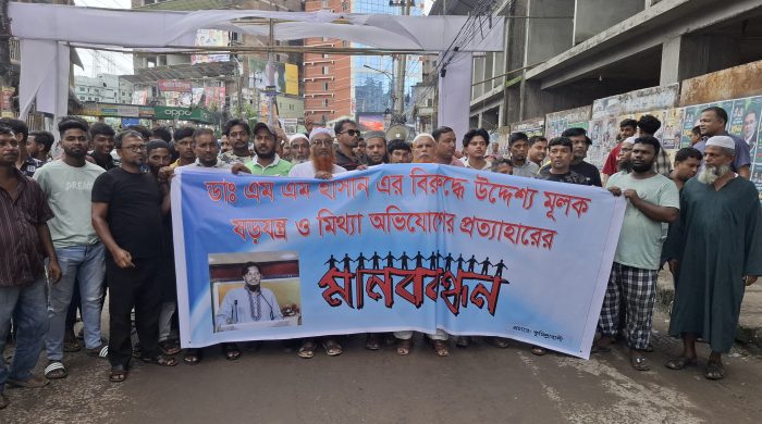 কুমিল্লা প্রতিনিধি : ডক্টরস অ্যাসোসিয়েশন অব বাংলাদেশ (ড্যাব) কুমিল্লা জেলা শাখার সভাপতি ডা. এম এম হাসানের বিরুদ্ধে উদ্দেশ্যমূলক ষড়যন্ত্র ও মিথ্যা অভিযোগের প্রতিবাদে মানববন্ধন অনুষ্ঠিত হয়েছে। আজ ২ অক্টোবর বৃহস্পতিবার