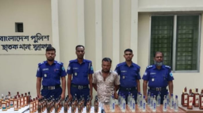 বিশেষ প্রতিনিধি সুনামগঞ্জ : সুনামগঞ্জের ছাতকে থানার পুলিশের বিশেষ অভিযানে বিপুল পরিমাণ ভারতীয় মদ উদ্ধার করা হয়েছে। এ সময় একজন আসামীকে গ্রেফতার করা হয়েছে। ছাতক থানা সূত্রে জানা যায়, অফিসার