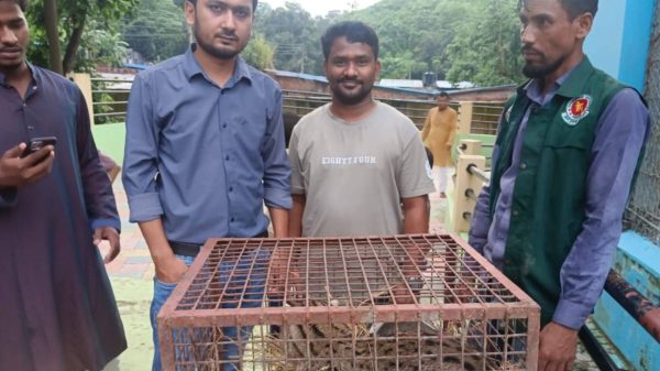 ফটিকছড়ি প্রতিনিধি : শুক্রবার (২৯ আগস্ট) ভোরে উপজেলার নানুপুর ইউনিয়নের একটি খামারে প্রাণীটিকে আটক করে স্থানীয়রা। পরে খবর পেয়ে উপজেলা প্রশাসন ঘটনাস্থলে গিয়ে মেছোবাঘটিকে উদ্ধার করে হেফাজতে নেয়। স্থানীয় খামারের