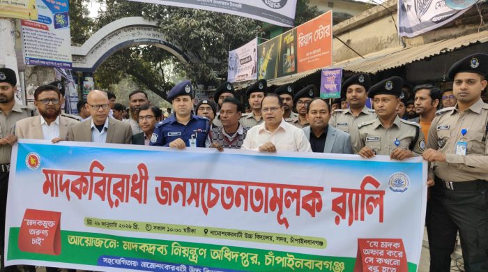 মাহিদুল ইসলাম ফরহাদ, চাঁপাইনবাবগঞ্জ জেলা প্রতিনিধি : চাঁপাইনবাবগঞ্জে মাদকদ্রব্য নিয়ন্ত্রণ অধিদপ্তরের আয়োজনে “মাদকমুক্ত বাংলাদেশ গঠনে তারুণ্যের ভূমিকা” শীর্ষক আলোচনা সভা ও গম্ভীরা গান অনুষ্ঠিত হয়েছে। “মাদকের বিরুদ্ধে হই সচেতন, বাঁচাই