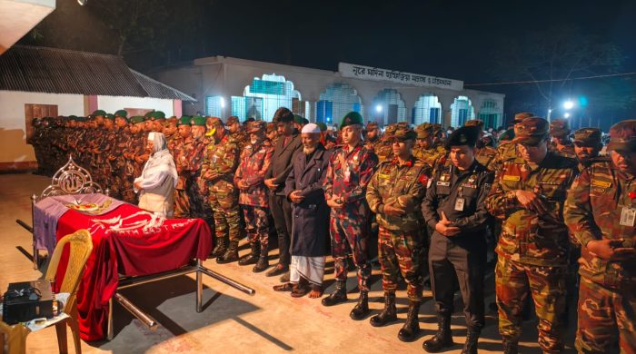 কুমিল্লা প্রতিনিধি : চট্টগ্রামের সীতাকুণ্ডে সন্ত্রাসীদের গুলিতে নিহত র‌্যাব সদস্য মো. মোতালেব হোসেন ভূঁইয়ার জানাজা ও দাফন সম্পন্ন হয়েছে। মঙ্গলবার ২০ জানুয়ারি রাত বাদ এশা কুমিল্লা আদর্শ সদর উপজেলার কালিবাজার
