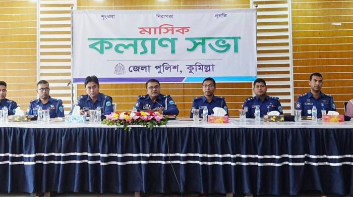 কুমিল্লা প্রতিনিধি : কুমিল্লা জেলা পুলিশের নিয়মিত কার্যক্রমের অংশ হিসেবে মাসিক কল্যাণ সভা অনুষ্ঠিত হয়েছে। আজ ১৮ জানুয়ারি রবিবার জেলা পুলিশ লাইন্স ড্রিলসেড শহীদ আরআই এ.বি.এম আবদুল হালিম মিলনায়তনে এই