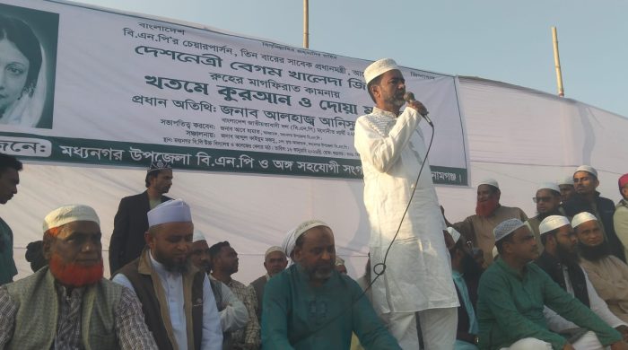 সুরঞ্জন তালুকদার, মধ্যনগর প্রতিনিধি : সুনামগঞ্জের মধ্যনগর উপজেলা বিএনপির উদ্যোগে বিএনপি চেয়ারপারসন, সাবেক তিনবারের প্রধানমন্ত্রী বেগম খালেদা জিয়ার রুহের মাগফিরাত কামনায় খতমে কুরআন ও দোয়া মাহফিল অনুষ্ঠিত হয়। আজ ১৬ই