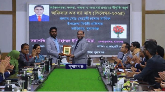 মো আব্দুল শহীদ, সুনামগঞ্জ প্রতিনিধি : সুনামগঞ্জের তাহিরপুরে কর্মতৎপরতা, দক্ষতা, স্বচ্ছতা ও জনসেবায় বিশেষ অবদানের স্বীকৃতি হিসেবে তাহিরপুর উপজেলার সুযোগ্য উপজেলা নির্বাহী কর্মকর্তা (ইউএনও) মেহেদী হাসান মানিক ‘অফিসার অব দ্য