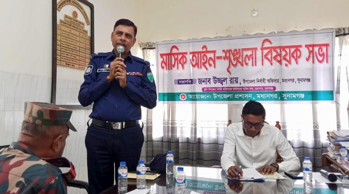 সুরঞ্জন তালুকদার মধ্যনগর প্রতিনিধি : সুনামগঞ্জের মধ্যনগরে মাসিক আইন-শৃঙ্খলা বিষয়ক সভা অনুষ্ঠিত হয়েছে। এতে সভাপতিত্ব করেন উপজেলা নির্বাহী কর্মকর্তা (ইউএনও) উজ্জ্বল রায়। বুধবার ১৪ জানুয়ারি দুপুরে উপজেলা নির্বাহী কর্মকর্তার কার্যালয়ের