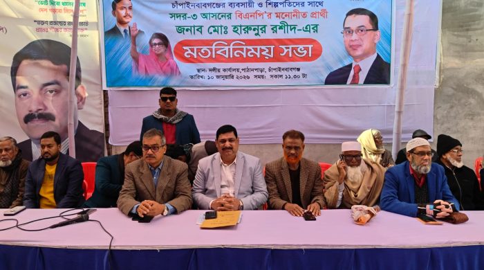 মাহিদুল ইসলাম ফরহাদ, চাঁপাইনবাবগঞ্জ জেলা প্রতিনিধি : চাঁপাইনবাবগঞ্জের ব্যবসায়ী ও শিল্পপতিদের সঙ্গে সদর-৩ আসনের বিএনপির মনোনীত প্রার্থী মোঃ হারুনুর রশীদের মতবিনিময় সভা অনুষ্ঠিত হয়েছে। আজ শনিবার ১০ জানুয়ারি সকাল সাড়ে